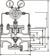 本系列減壓閥屬于先導(dǎo)活塞式減壓閥。由主閥和導(dǎo)閥兩部分組成。主閥主要由閥座、主閥盤、活塞、彈簧等零件組成。導(dǎo)閥主要由閥座、閥瓣、膜片、彈簧、調(diào)節(jié)彈簧等零件組成。通過調(diào)節(jié)調(diào)節(jié)彈簧壓力設(shè)定出口壓力、利用膜片傳感出口壓力變化,通過導(dǎo)閥啟閉驅(qū)動(dòng)活塞調(diào)節(jié)主閥節(jié)流部位過流面積的大小,實(shí)現(xiàn)減壓穩(wěn)壓功能。