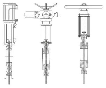 本產(chǎn)品驅(qū)動裝置可采用電動、氣動、手動、傘齒輪轉(zhuǎn)動等裝置。汽動裝置可安裝空氣過濾器、電磁閥、感應(yīng)器,如安裝以上驅(qū)動裝置,汽動裝置應(yīng)在合同中注明。