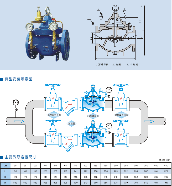 200X減壓閥是一種利用介質(zhì)自身能量了調(diào)節(jié)與控制管路壓力的智能型閥門。用于生活給水、消防給水及其他工業(yè)給水系統(tǒng),通過調(diào)節(jié)減壓導閥,即可調(diào)節(jié)主閥的出口壓力。出口壓力不因進口壓力、進口流量的變化而變化,安全可靠地將出口壓力維持在設定直上,并可根據(jù)需要調(diào)節(jié)設定直以達到減壓目的。該閥減壓精確,性能穩(wěn)定、安全可靠、安裝調(diào)節(jié)方便,使用壽命長。